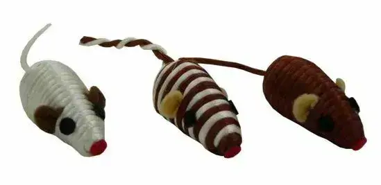 Myška hnědá/zlatá Hračka určená pro kočky. Tělo myšky chrastí. Vnitřek: dutý plast. Z venku: hladká pletená šňůra. Velikost: cca 5cm (tělo myšky) ILUSTRATIVNÍ FOTO
